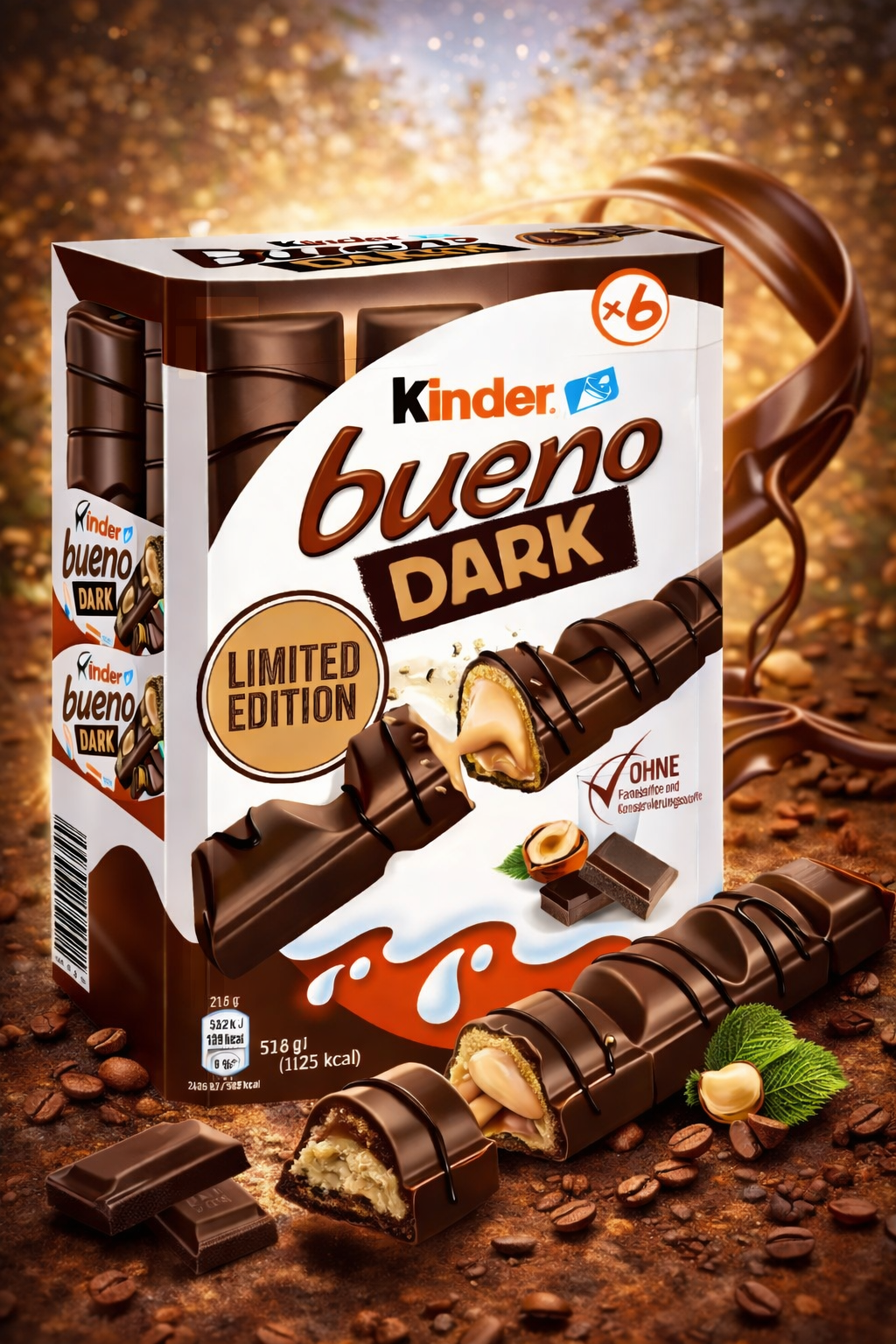 Kinder Bueno Dark 黑巧克力榛果牛奶夾心威化棒(限定版)6 入